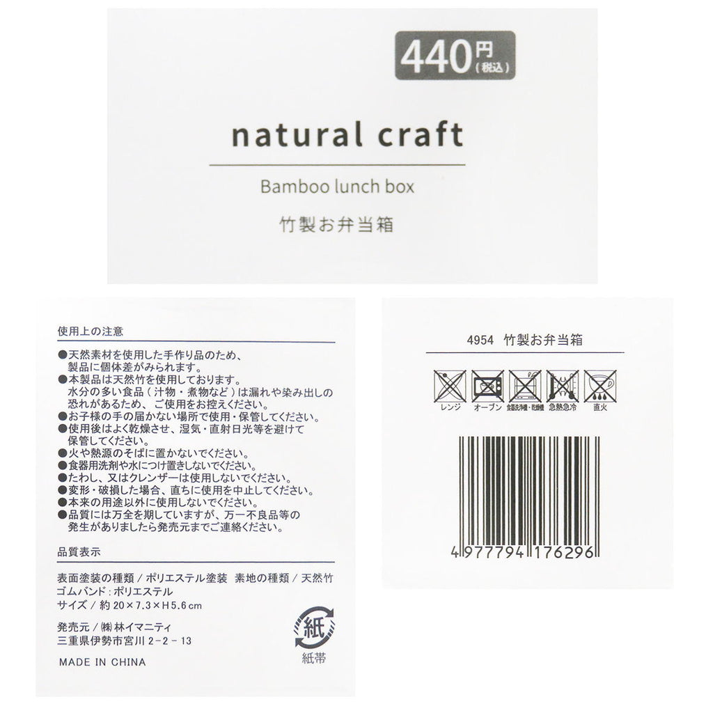 天然竹を使用したお弁当箱です。 天然素材を使用した手作り品のため、製品に個体差が見られます。 水分の多い食品(汁物・煮物など)は濡れや染み出しの恐れがあるため、ご使用をお控えください。