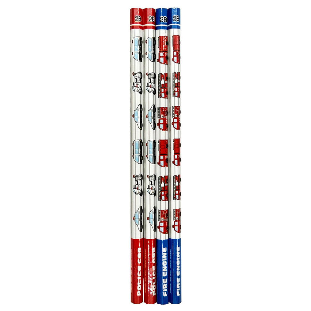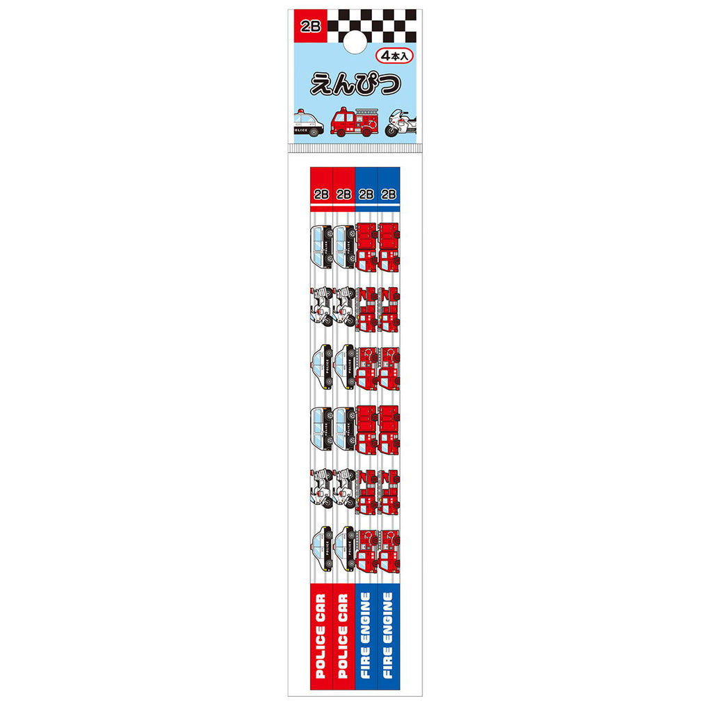 子供に人気な乗り物柄の鉛筆です。 学習に最適な2B芯。 4本入り。