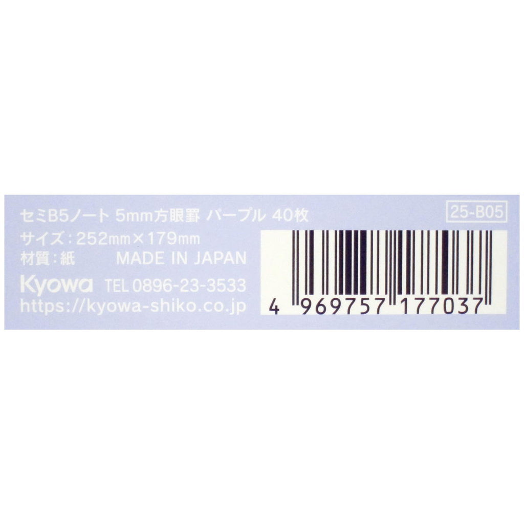 【まとめ買い】セミB5ノート 5mm方眼罫 パープル 40枚 0915/368951