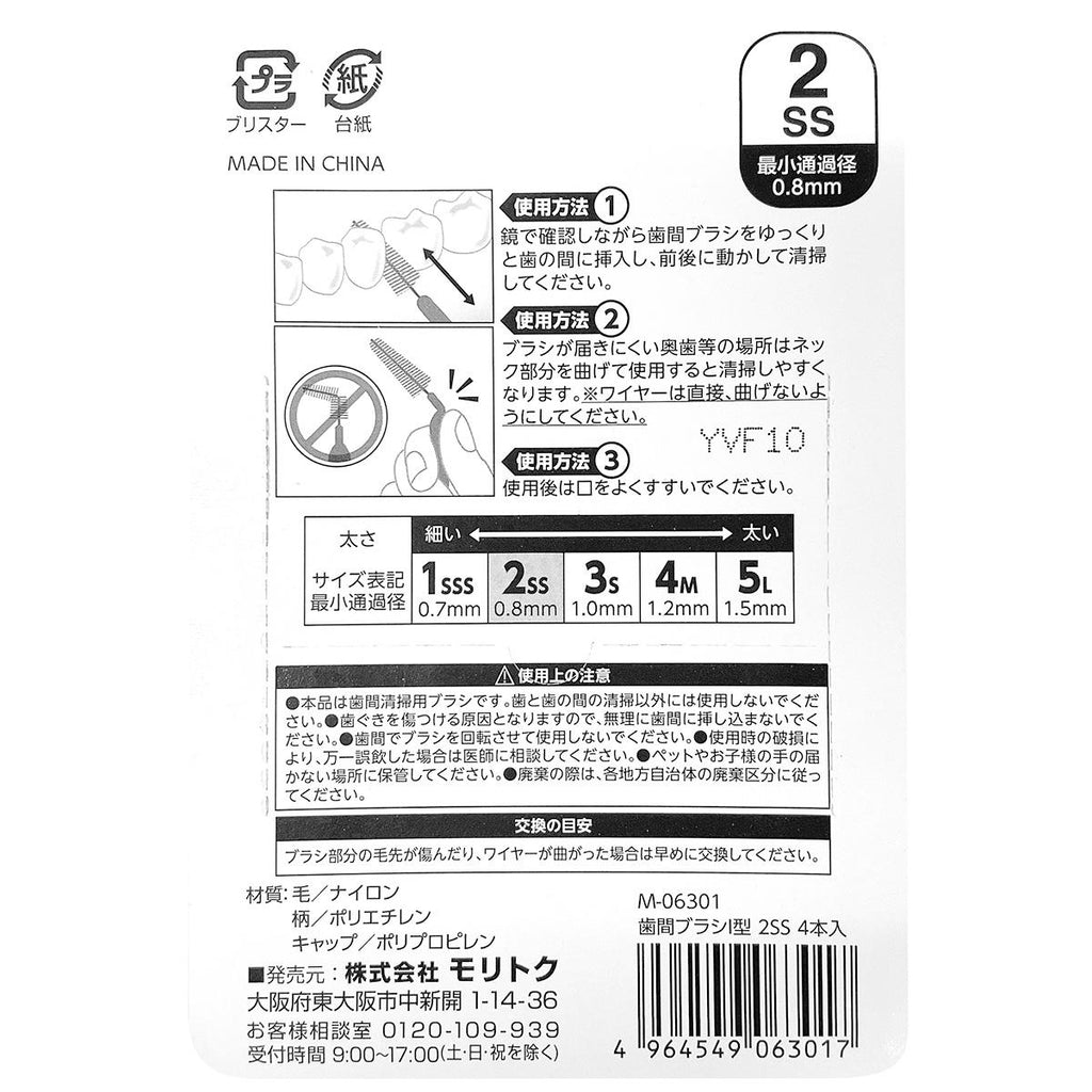 I型歯間ブラシ 2SSサイズは、狭い歯間にもスムーズに挿入できる最小通過径0.8mmの極細ブラシです。持ちやすいグリップとコンパクトなブラシ設計により、毎日の歯間ケアがより快適に行えます。1パックに4本入りでキャップ付き。衛生的に保管でき、持ち運びにも便利な設計です。