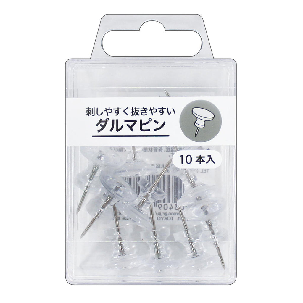 刺しやすく抜きやすい透明・大サイズのダルマピンです。 10本入。
