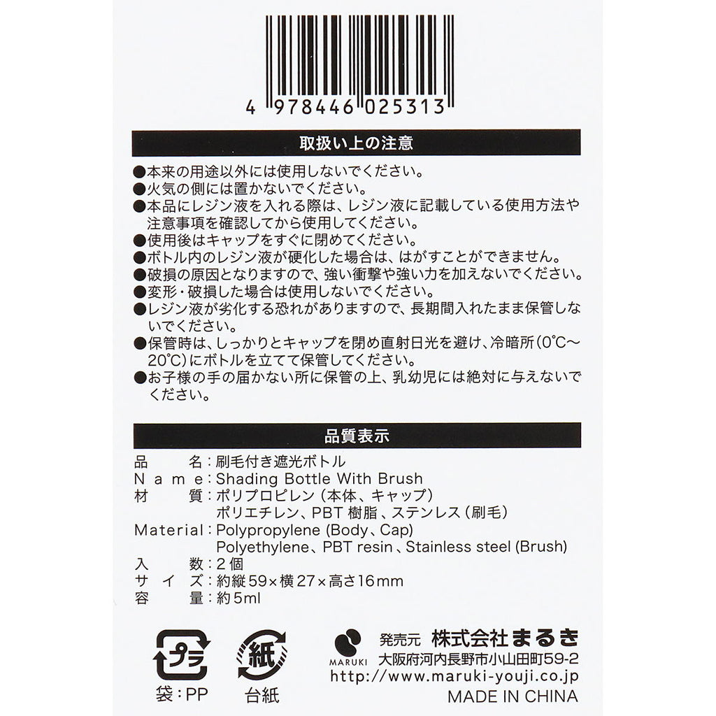 刷毛付きのため、レジン液が塗りやすい遮光ボトルです。