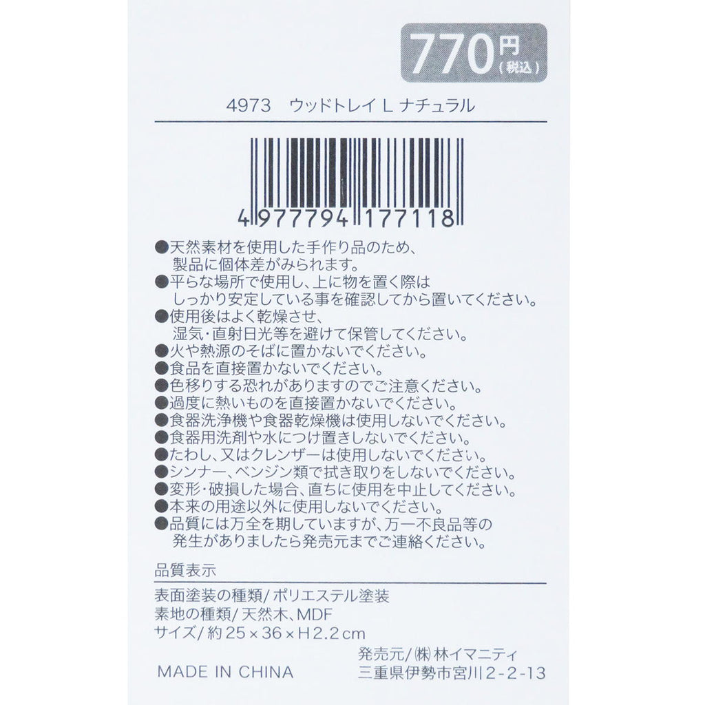 【まとめ買い】ウッドトレイ L ナチュラル 0599/327838