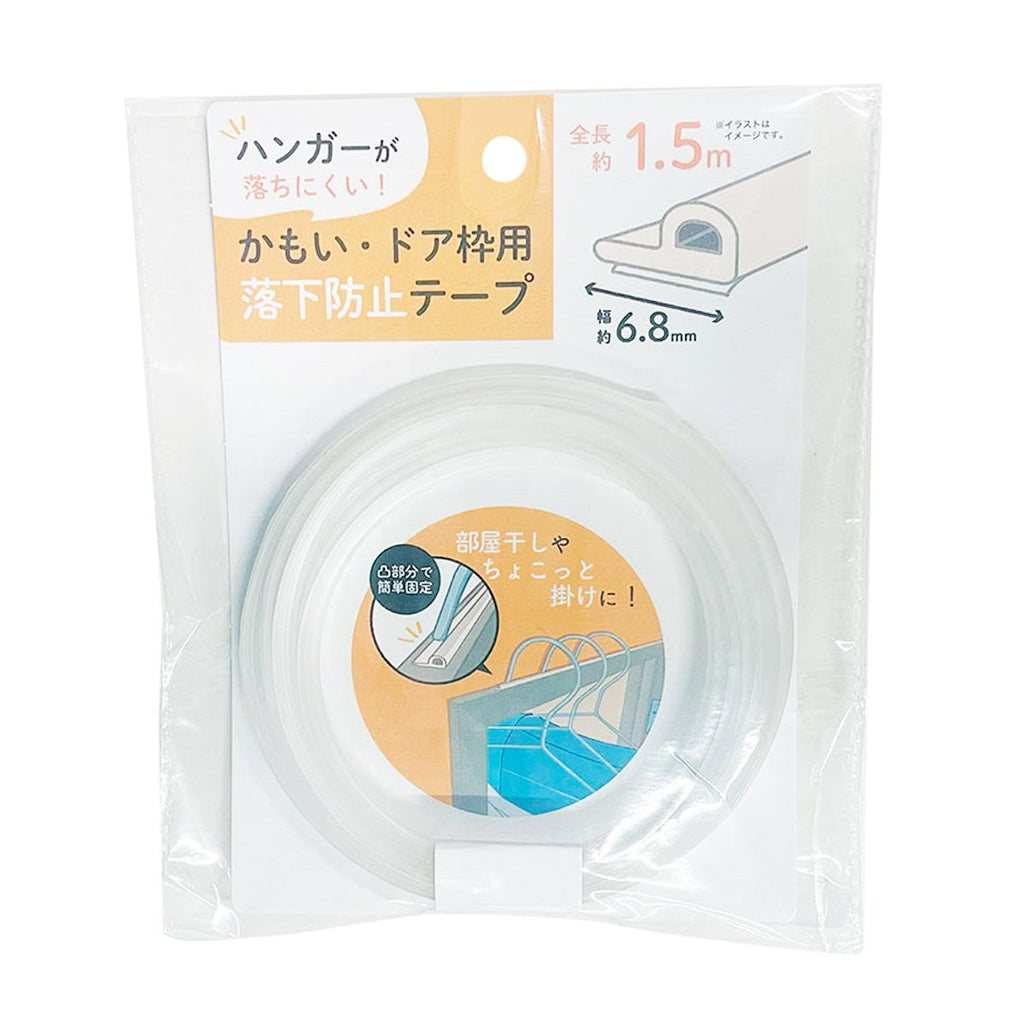 かもいやドア枠に貼って部屋干しや一時的に服を掛ける際に、ハンガーの落下を防止できるテープです。