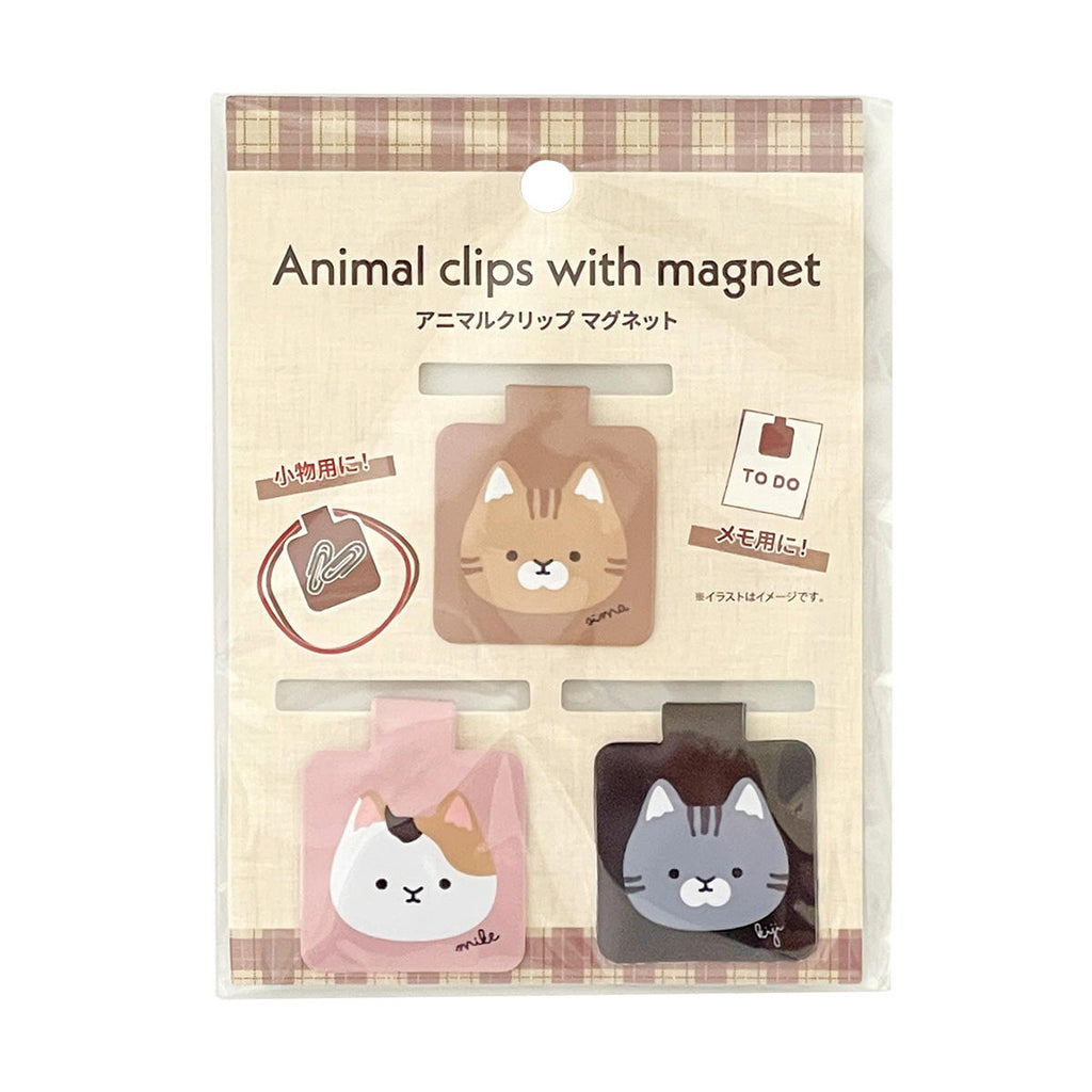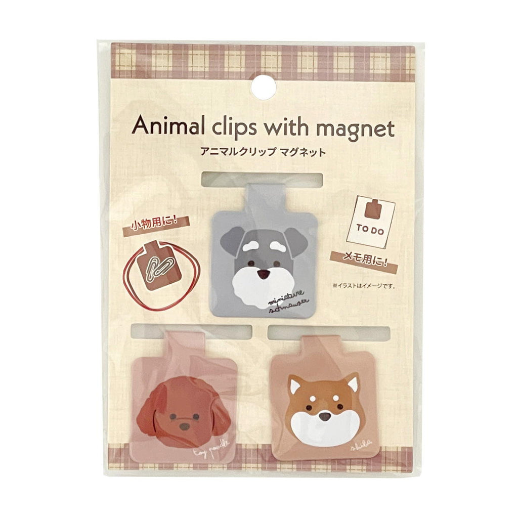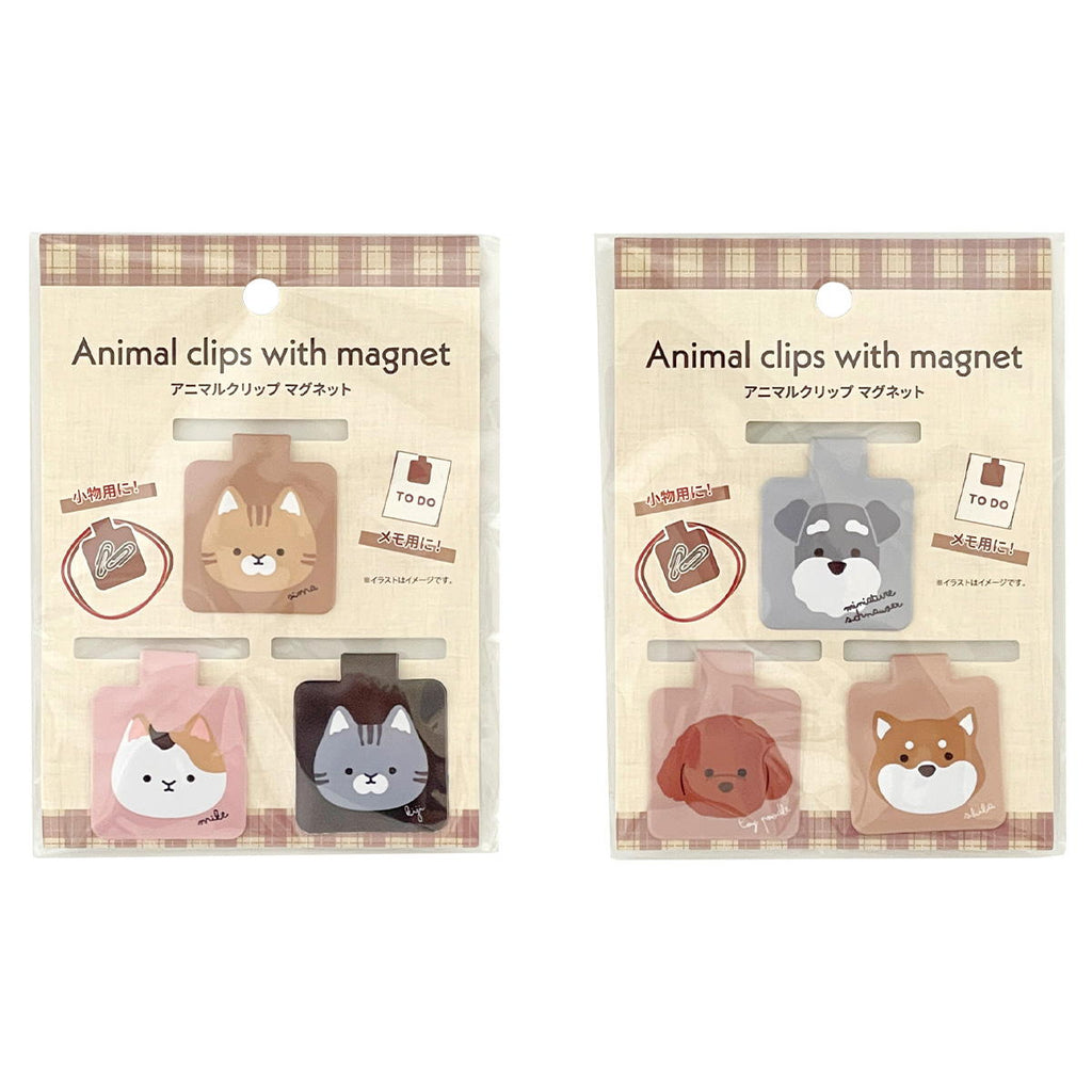 小物やメモなどを挟んで、冷蔵庫などにピタッと貼っておけるクリップマグネット3個入りです。 表にはアニマルの顔、裏には肉球がデザインされています。 3個それぞれ絵柄の違うデザインが楽しめます。 犬と猫の2種類アソート。