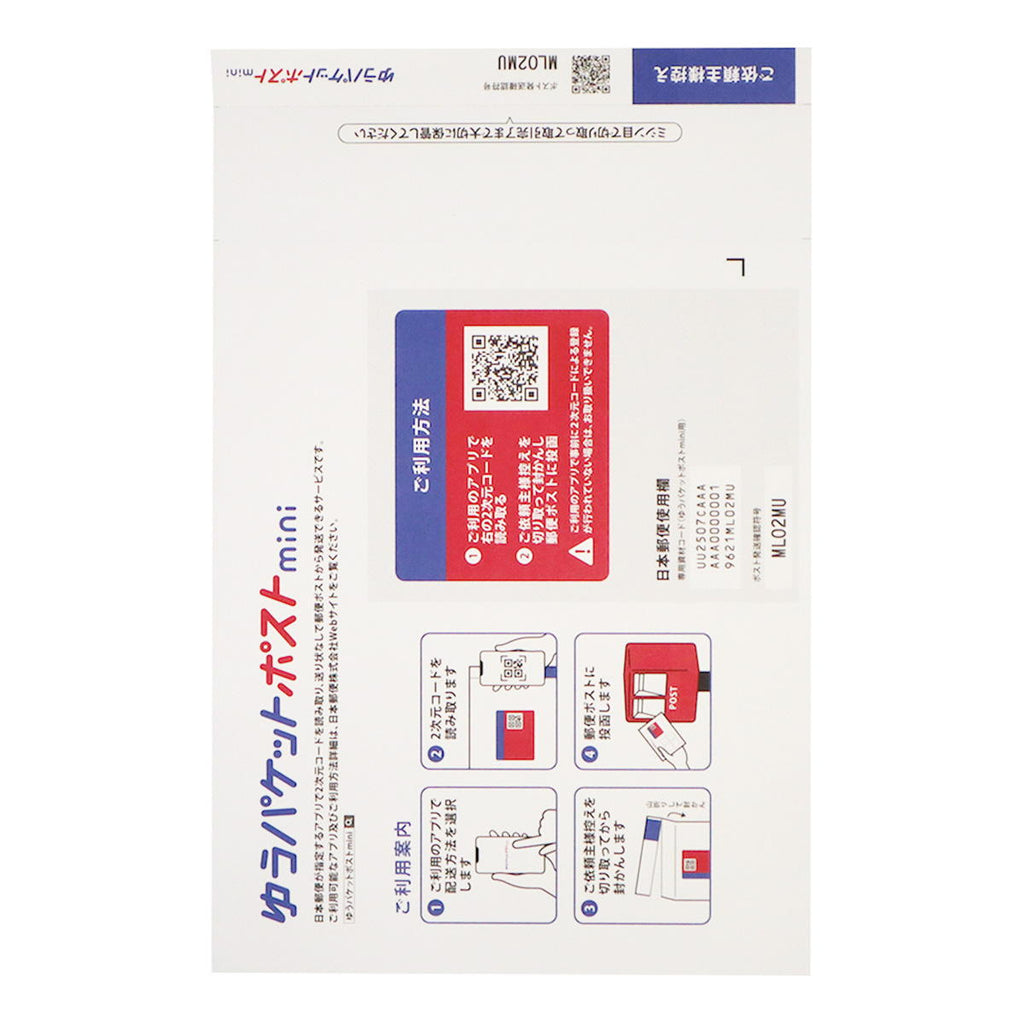 日本郵便のサービス「ゆうパケットポストmini」を利用するための専用封筒、そのまま郵便ポストへ投函可能です。