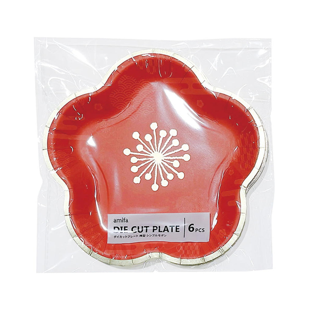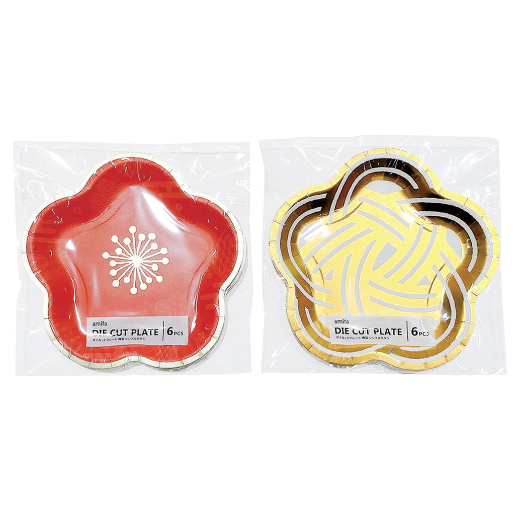ホームパーティーやレジャーで使えるダイカットペーパープレートです。 水引や梅などおめでたいモチーフが箔押しで華やかなデザインです。