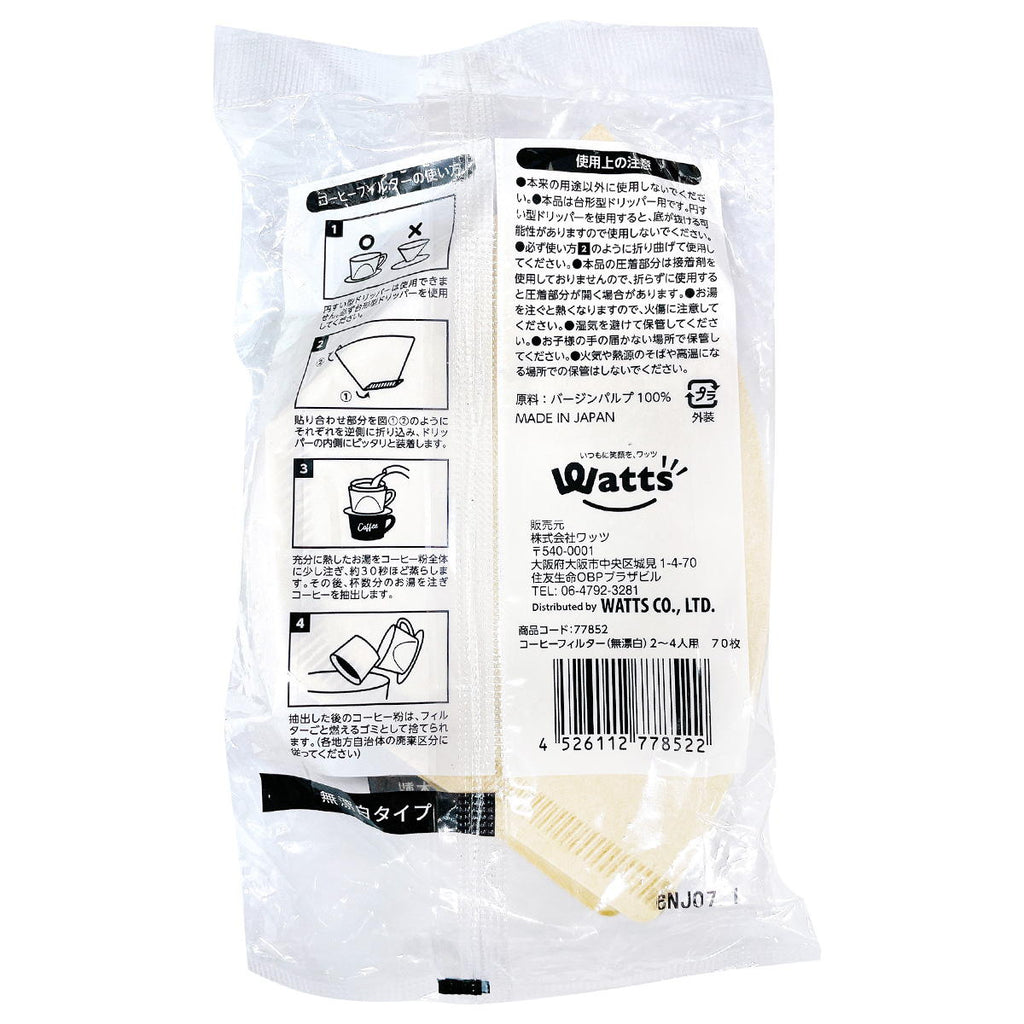 【まとめ買い】Tokinone PB.コーヒーフィルター(無漂白)2〜4人用 70枚 0808/077852