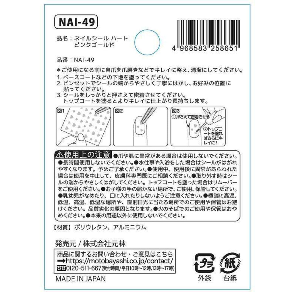 貼るだけで簡単にピンクゴールドの可愛いハートネイルができます。