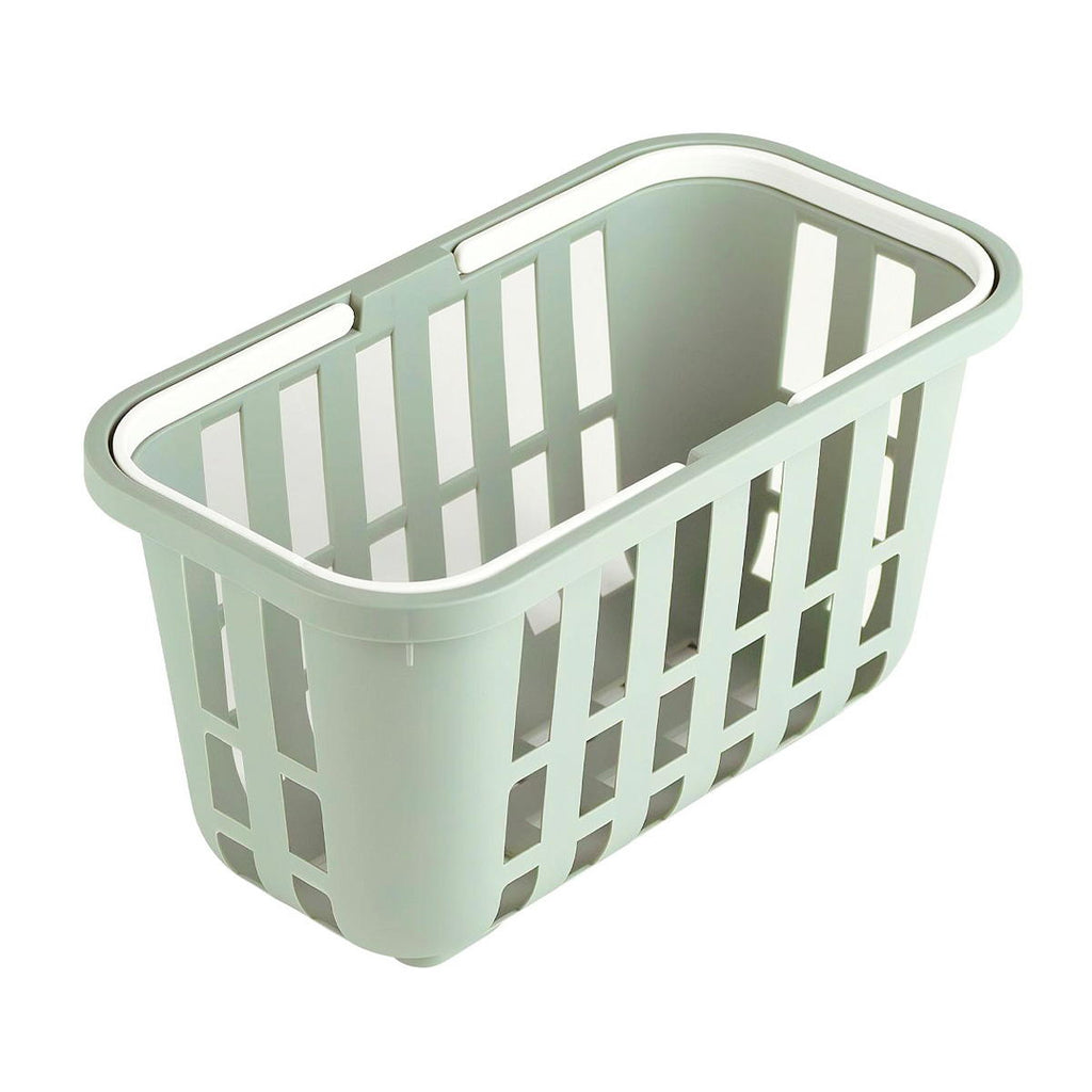 収納に使えるマルチバスケット。 ハンドルがバスケットの内側にスッキリ収納。 丸みのあるフォルムとくすみカラーで柔らかな印象。