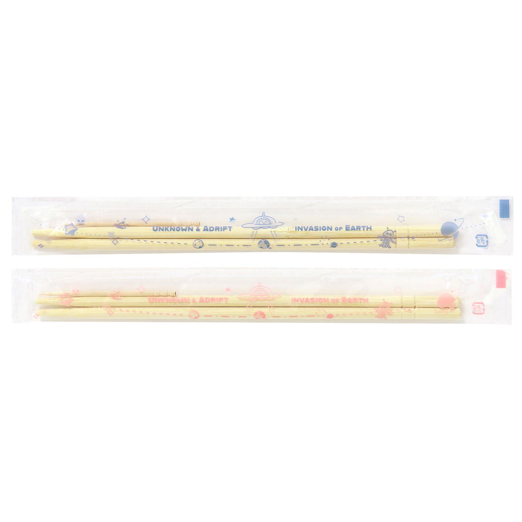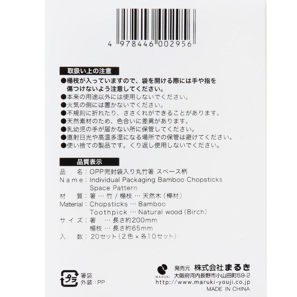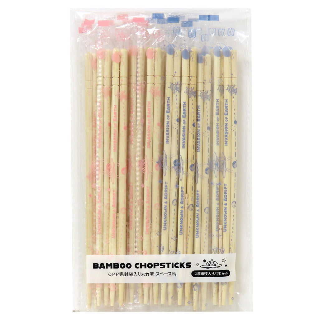 スペース柄のOPP袋入り丸竹箸、20セット入。