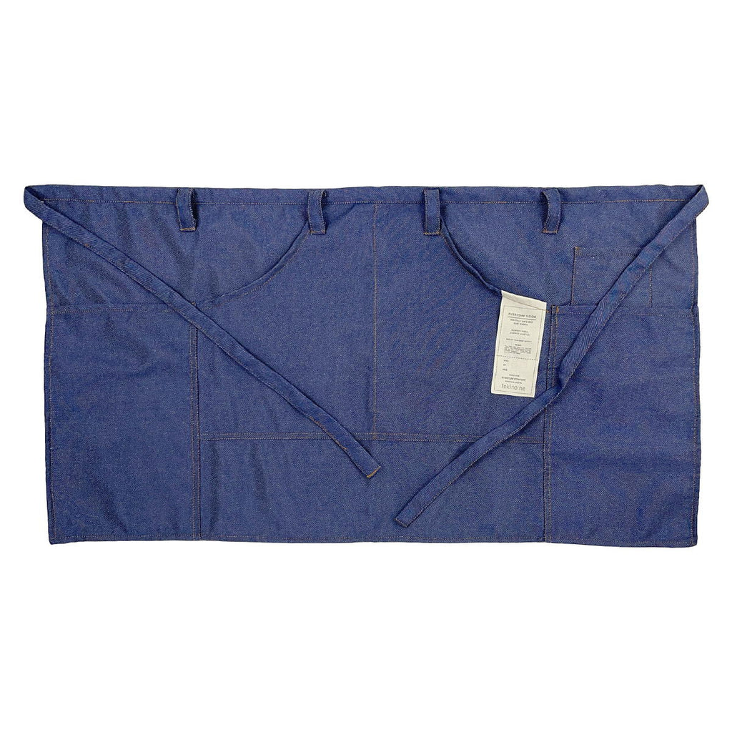 デニム調の落ち着いた風合いで、5つの豊富なポケット。 おしゃれと機能性を兼ね備えたウェストエプロンです。
