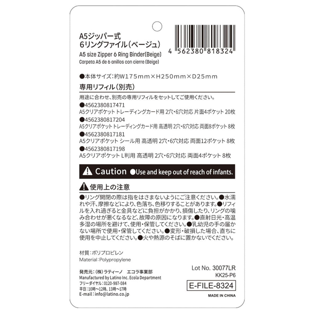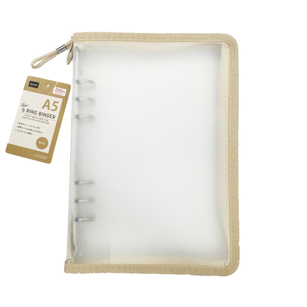 ジッパー付、内ポケット付、ループ付。 A5サイズ。