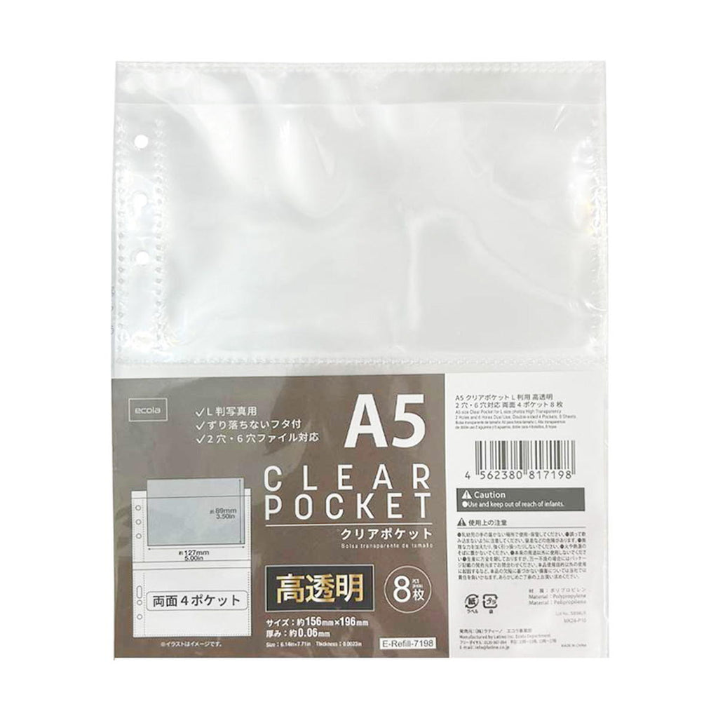 フラップ付。 L判用。 両面。 高透明A5サイズ、8枚