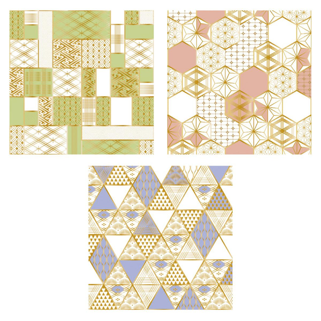 トレーシングペーパー素材の透けるデザインペーパー3柄入り。 モダンな和柄の格子を箔で表現しました。 アイディア次第でラッピングやメモ、コラージュにも使えます。