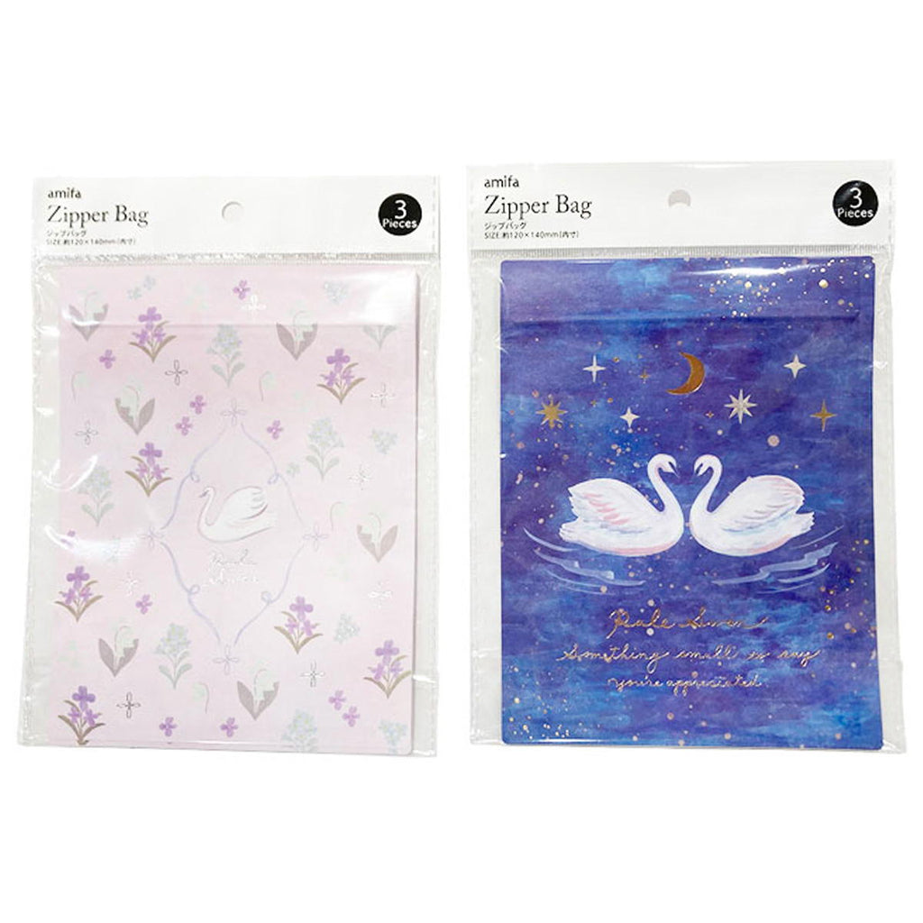 お菓子や雑貨の小分けに便利なジッパー付きのバッグです。 食品を直接入れることができます。 優雅に舞う白鳥をあしらったデザイン。 可憐でやわらかな雰囲気。