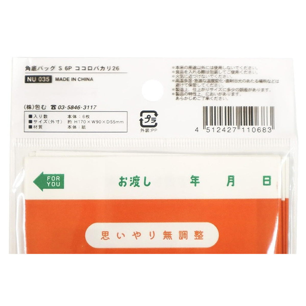 6枚入、牛乳パックデザインの角底バッグです。