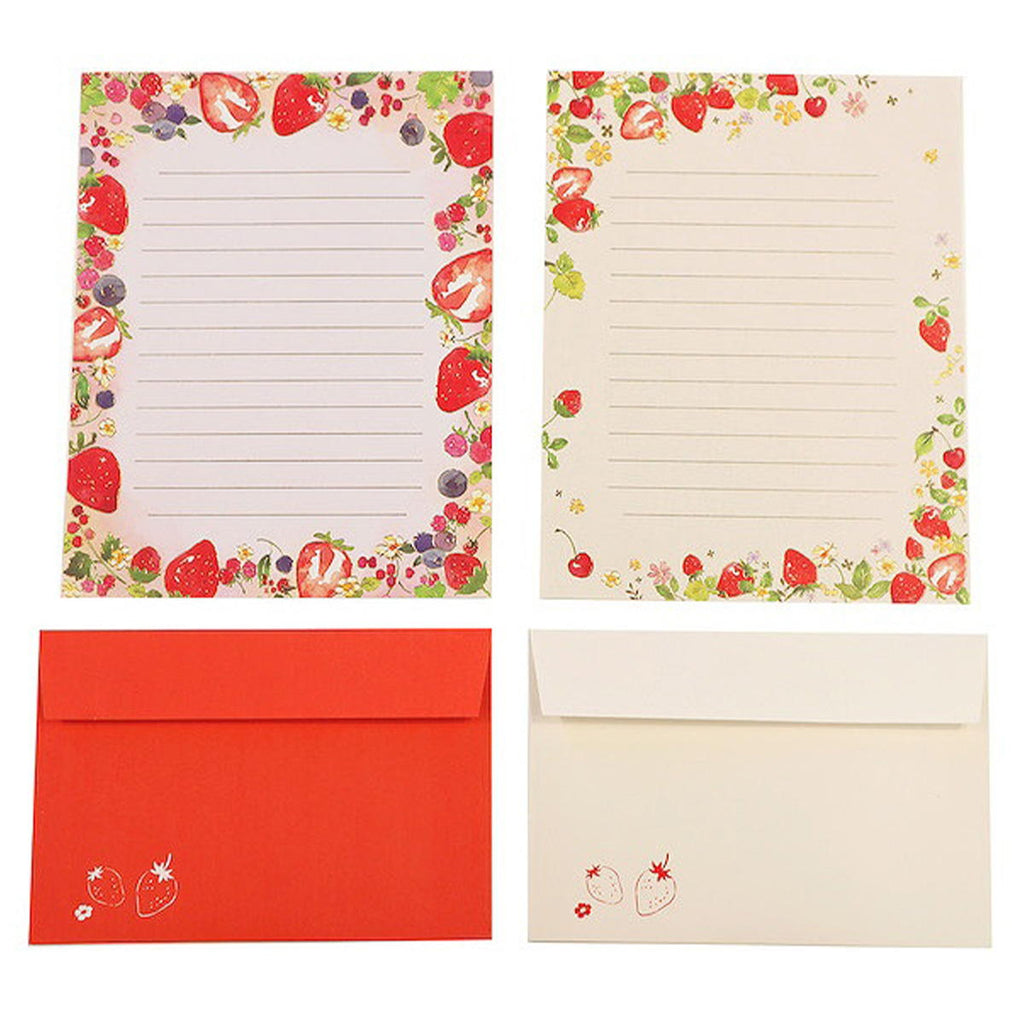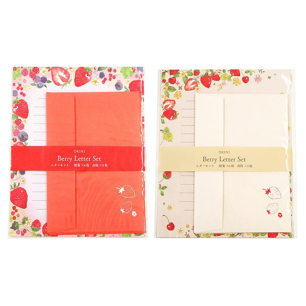 便箋:6枚入、封筒:3枚入、鮮やかなベリーのイラストが散りばめられた、箔押しの可愛いレターセットです。