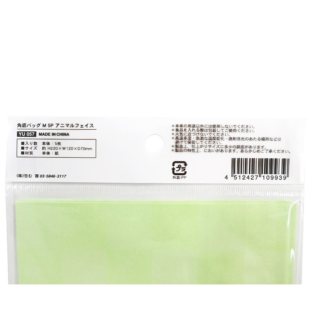 アニマルの顔が大きく印刷された角底バッグです。 5枚入。