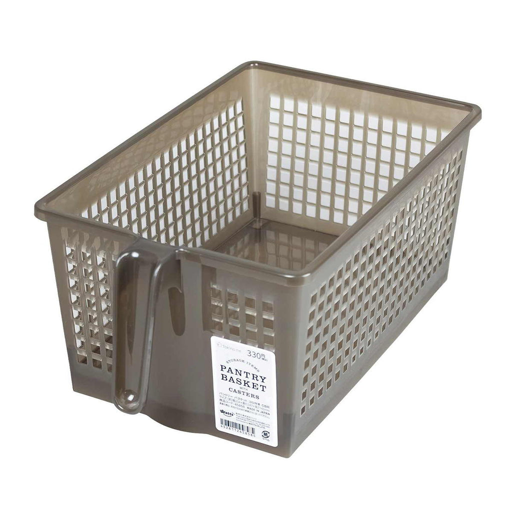 高い場所が便利に使えるコロ付バスケット! ハンドル×コロで吊戸棚でもラクラク収納! 袋麺やレトルト食品の箱がちょうど収まるサイズ感! 使用しない時は、積み重ねて省スペースで片付けられる!