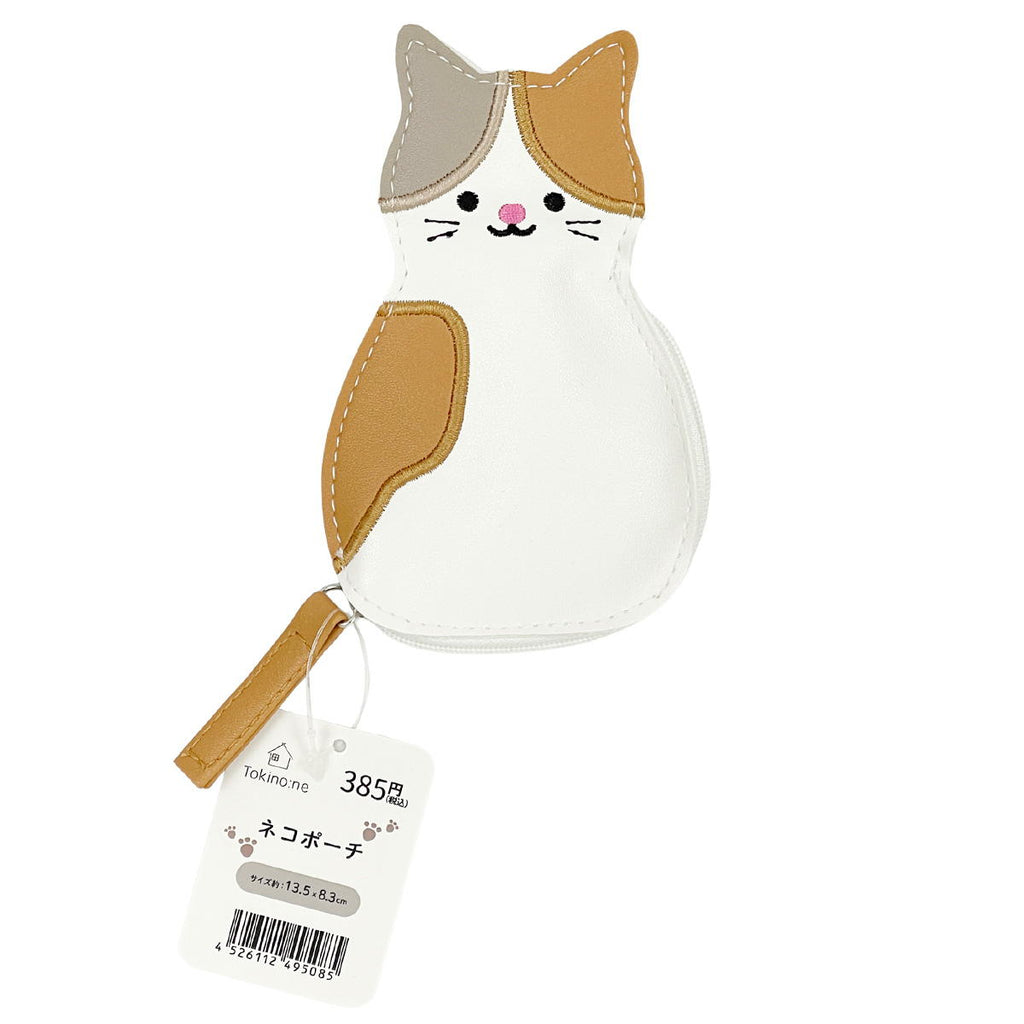 ネコ型シルエットがキュンとする、合成皮革のミニポーチです。