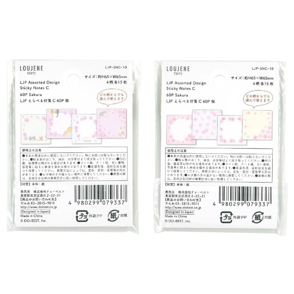 桜とネコの柄でデザインした付箋に仕上げました。 1冊4柄入り、好きな柄から使える付箋。 入り数:1冊4柄×各15枚、計60枚入り