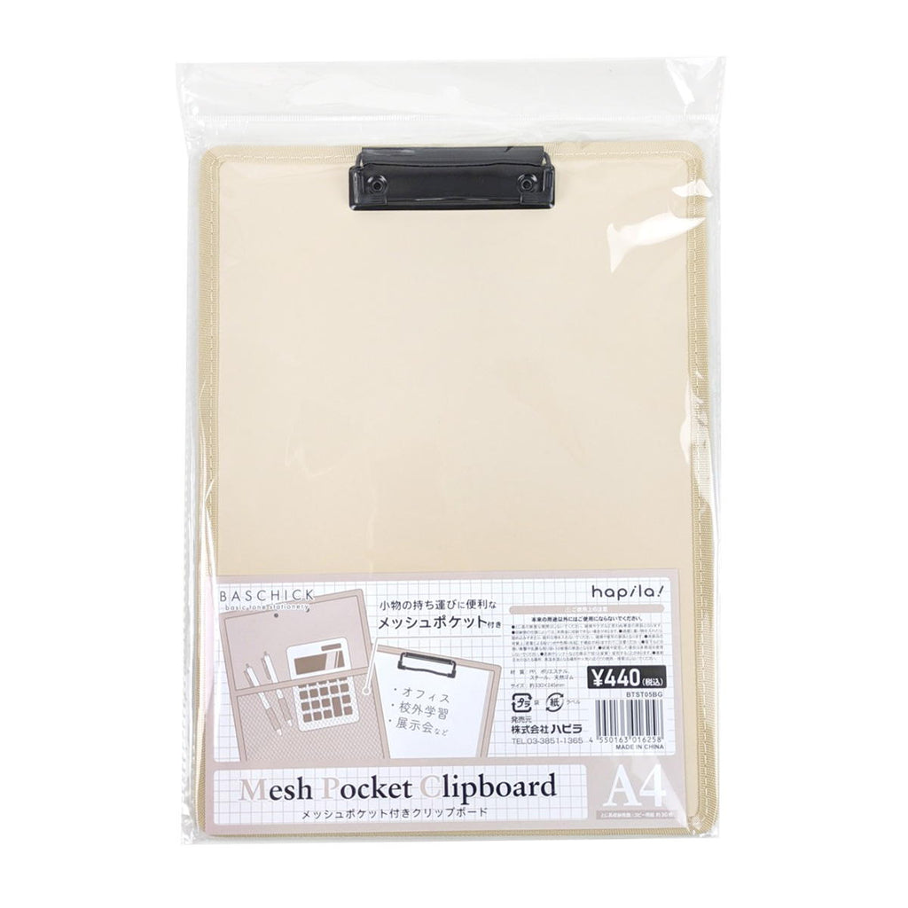 【まとめ買い】メッシュポケット付クリップボード ベージュ 9001/370083