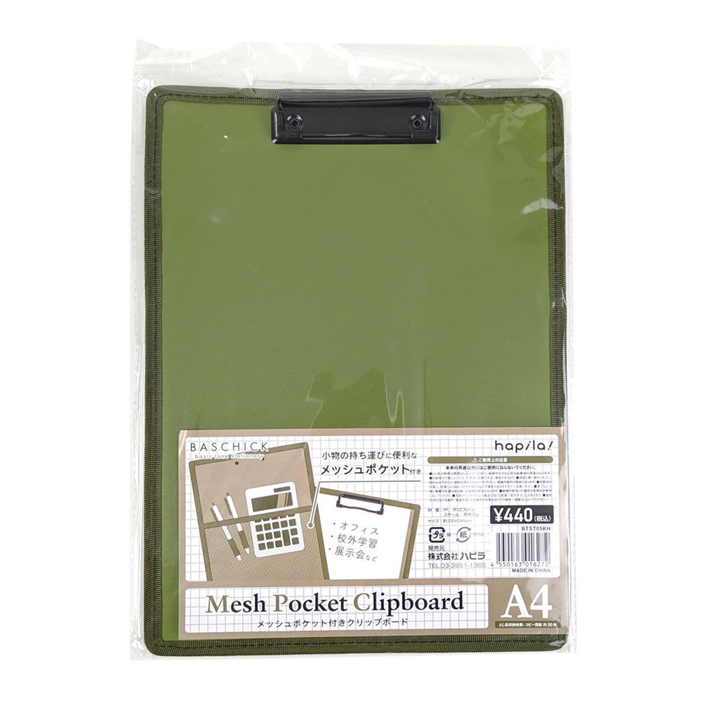 【まとめ買い】メッシュポケット付クリップボード カーキ 9001/370085