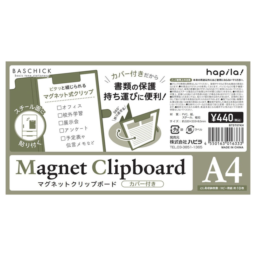 スチール面に貼り付く、マグネットタイプのクリップボードです。 カバー付きのため、書類の保護・持ち運びに便利です。