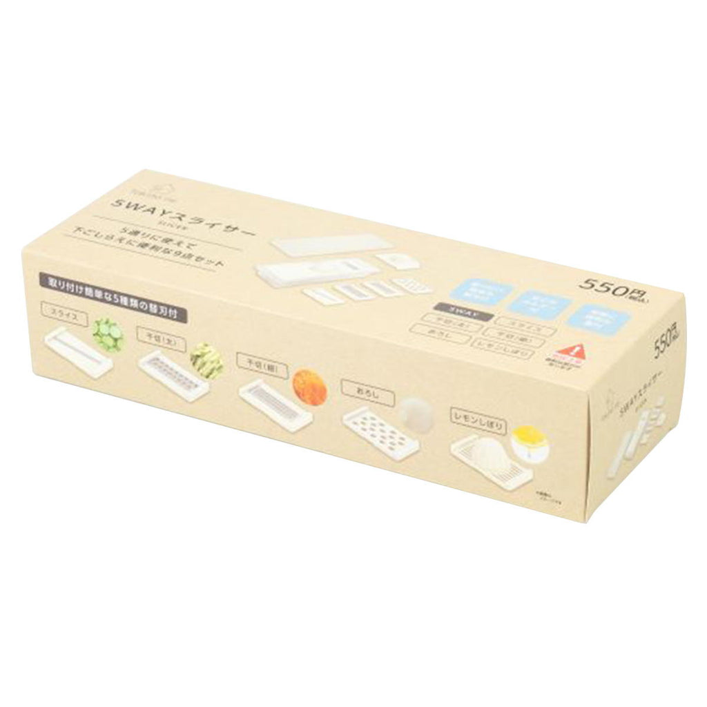 スライス、千切り(太)、千切り(細)、おろし、レモンしぼりの5通りに使えて保存もできる9点セットのカセットスライサーです。