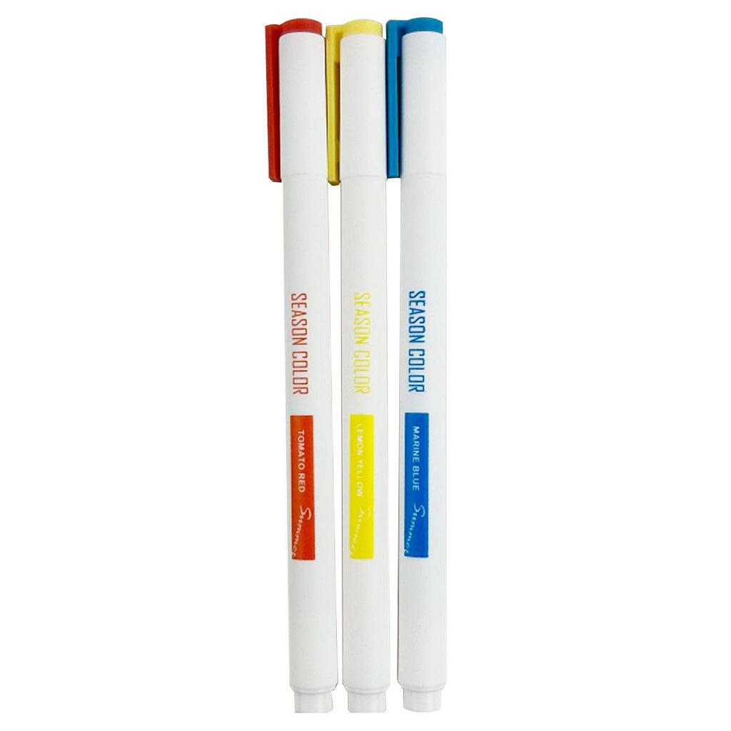 スタディライフを華やかにするマーカーペンです。 トマトレッド/レモンイエロー/マリンブルーの3色入