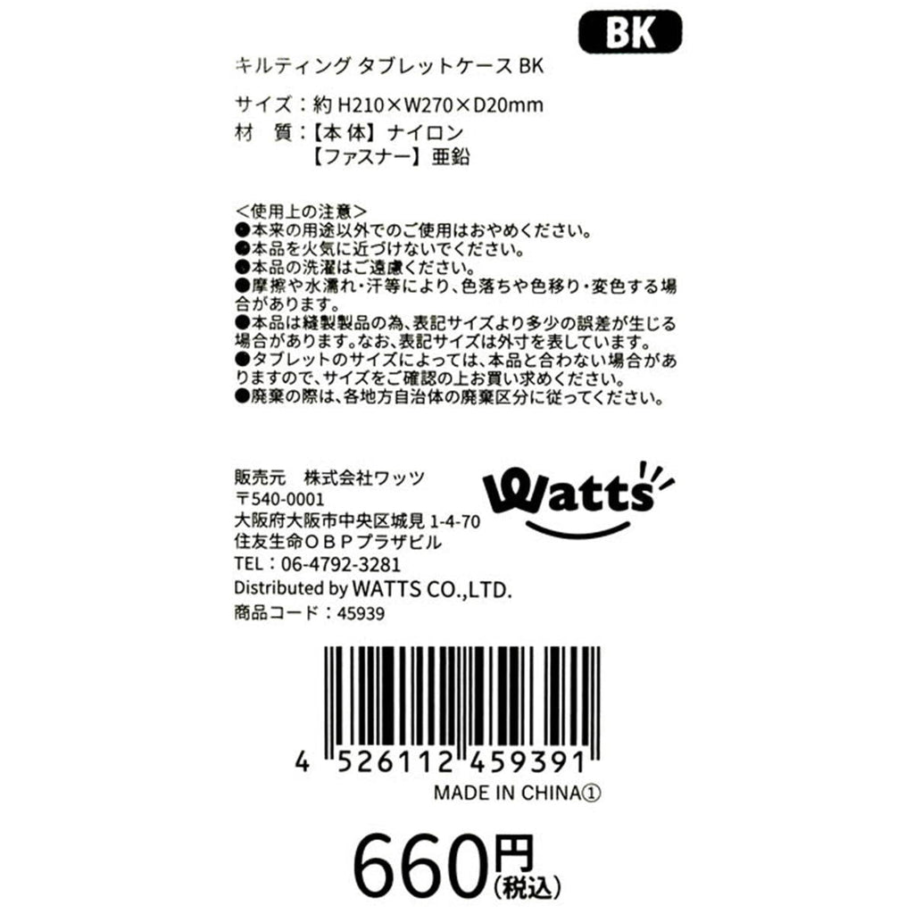 【まとめ買い】Tokinone PB.キルティング タブレットケース BK 1980/045939